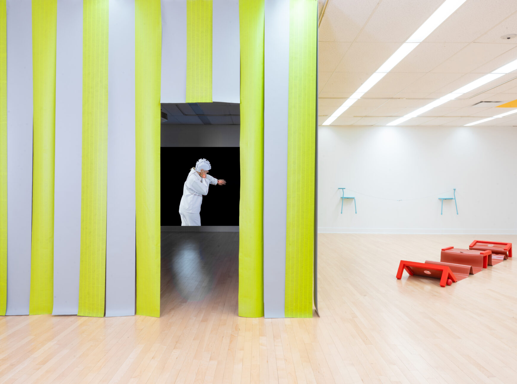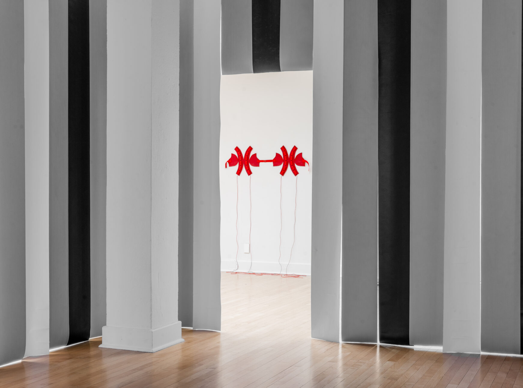 Le projet s’articule autour d’une œuvre vidéo mettant en scène une rencontre entre deux sujets aux univers opposés qui s’illustre par l’emploi du noir et du blanc. Entre fonction et fiction, des dispositifs de rencontre donnent corps à une poésie de la distance et mènent à l’élaboration d’un langage commun. Les gestes cherchent l’équilibre, guidés par le jeu. À demi pas, les mesures s’accordent dans une dynamique tantôt polarisée, tantôt complémentaire. La matérialité des objets s’enrichit à travers les échanges et se reflète dans leur transformation progressive. Au fil de la rencontre, l’adversité évolue vers une zone de complicité. L’emploi de la couleur apparaît alors comme une zone grise qui devient marqueur de compromis et agit comme un tiers espace dans lequel les discours s’alignent.