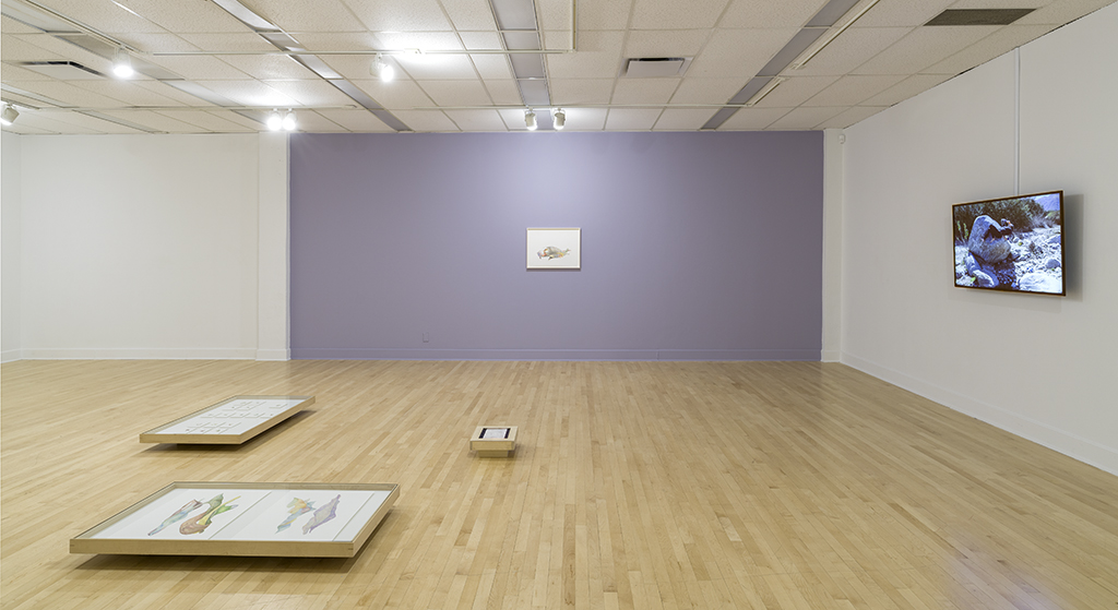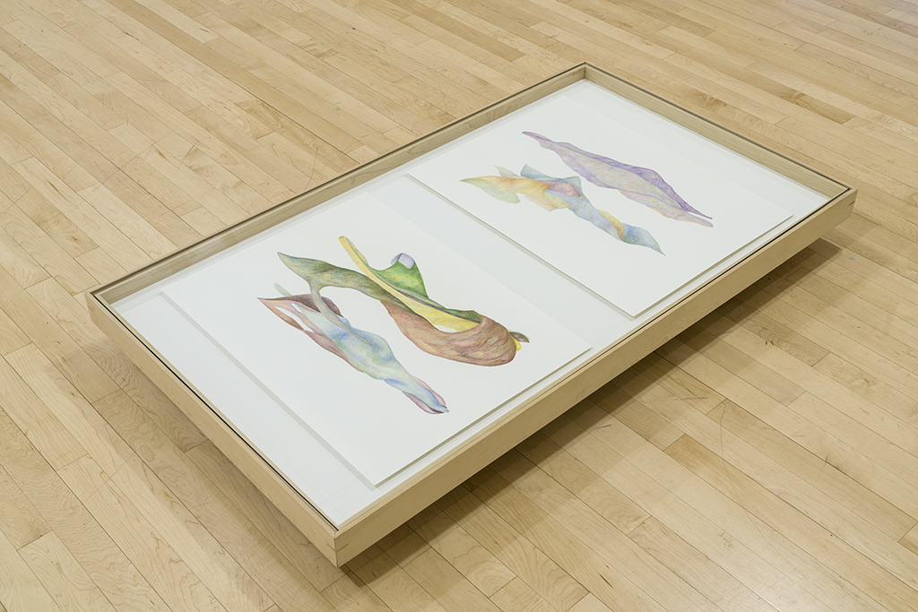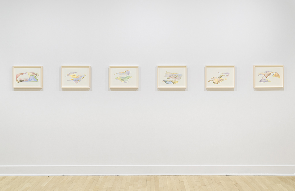 De la présence de la gestuelle à l’exploration de la spatialité, diverses correspondances plastiques se tissent entre les œuvres dessinées et celles de nature performative. L’usage de l’abstraction étend l’horizon sémantique des propositions graphiques tout en misant sur leur réception esthétique. Derrière ce qui s’apparente à des drapés en apesanteur émerge subtilement l’univers de l’intime. Les formes amorphes aux contours souples insinuent à la fois l’absence physique et la présence charnelle. Les performances vidéo ancrent pour leur part les mouvements des corps dans des paysages. Elles soulignent la fluctuation des relations avec autrui et l’évolution du sentiment d’appartenance, à un lieu comme à une communauté.