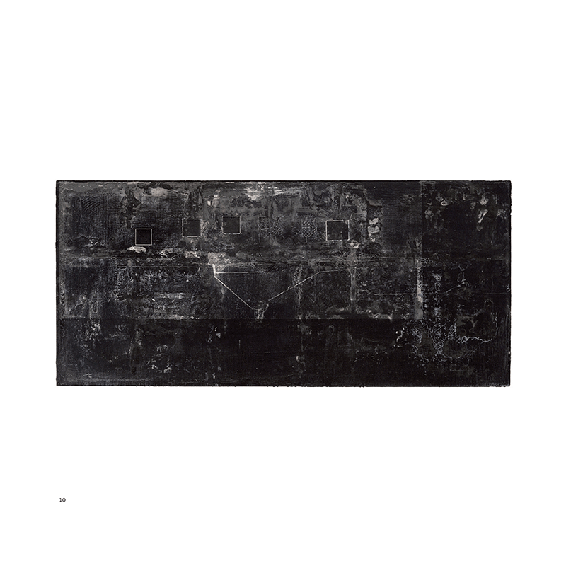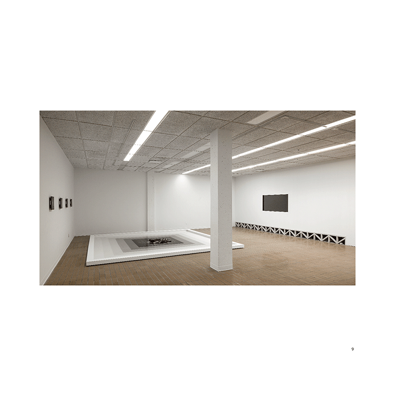 Dans son texte, Thomas Corriveau, qui est également artiste, témoigne de l’approche sombre et énergique de la peinture de Simon Bilodeau. Un travail cependant dominé ici par la relation conceptuelle entre les éléments de l’expostiion, où se trouvent disséminées les fortes allusions au complexe Fukushima, notamment dans « le désolant monticule de cendres au milieu du bassin de l’installation de Plein sud » ou encore dans « les distantes lueurs d’une vidéo [qui] font entrevoir la source de toutes les angoisses : les restes disloqués de la centrale Fukushima Daiichi qui, dans une immobilité et un silence trompeurs, laissent s’échapper les invisibles émanations de son coeur radioactif hors de contrôle. »